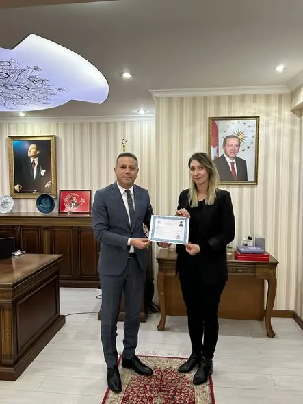 Maçka Kaymakamı Şahin Demir, üstün başarı ve özverili çalışmaları nedeniyle Hamsiköy Orman İşletme Şefi Evşen Beray Kocapınar ile ORKÖY Birimi Sorumlusu Cemal Şimşek’i başarı belgesi ile taltif etti.