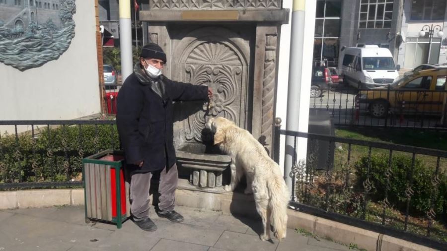 Aradığını bulamayınca da başka musluklara yöneldi. Olayı fark eden Maçka’nın esnaflarından Foto Talip Muratoğlu, köpeğin yanına gitti ve çeşmenin musluğunu açarak sokak köpeğinin su içmesine yardım etti. Köpek musluktan akan sudan kana kana içerken bize de bu hayırlı olayı fotoğraflamak kaldı.