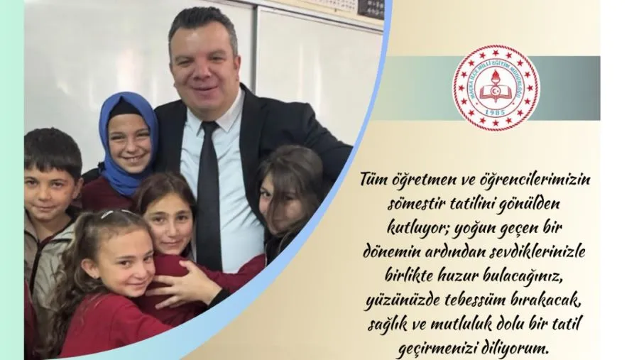Bir eğitim-öğretim dönemini daha emek ve özveriyle tamamlayarak sömestr tatiline girmenin mutluluğunu yaşıyoruz. Bu tatilin; öğretmenlerimiz, öğrencilerimiz ve eğitim camiamızın tüm paydaşları için dinlenme, yenilenme ve yeni döneme güç toplayarak hazırlanma fırsatı sunmasını temenni ediyorum.