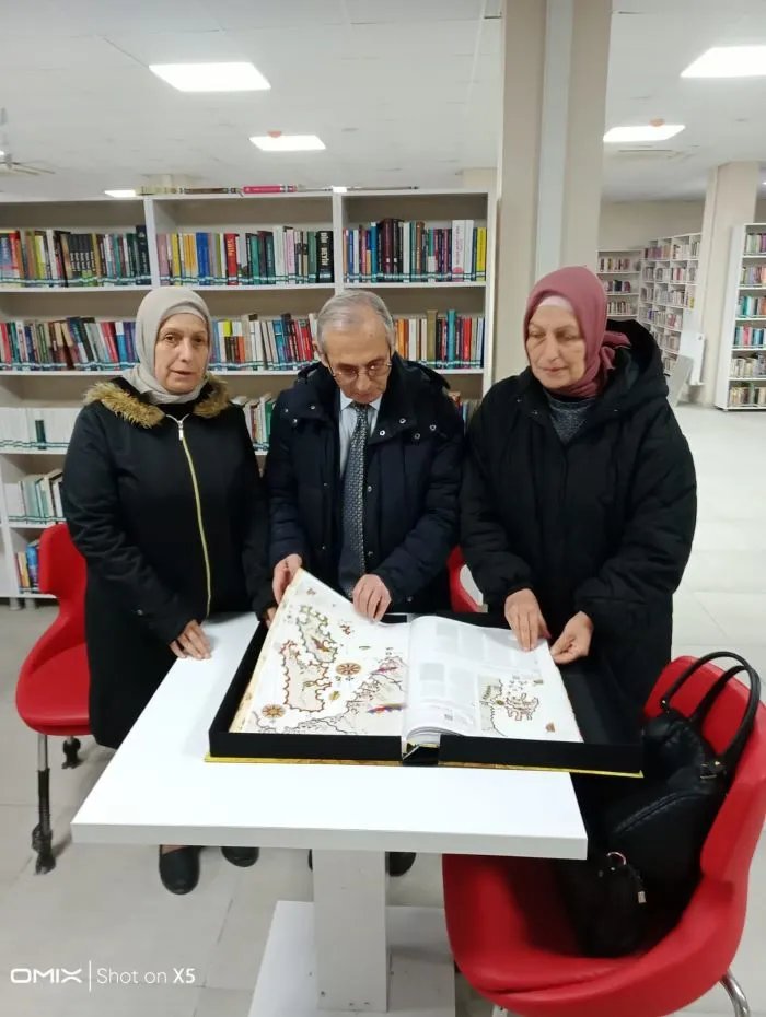 Daha sonra Yazar Necmi Koç, Gazete sahibi Duygu Karahasanoğlu ve Yazı İşleri Müdürü Fatma Karahasanoğlu kardeşler ile İlçe Halk Kütüphanesi Sorumlu Memuru Davut Yasin Coşkun, kütüphanenin envanterindeki kitapların bazılarını inceleyerek fikir teatisinde bulundular.