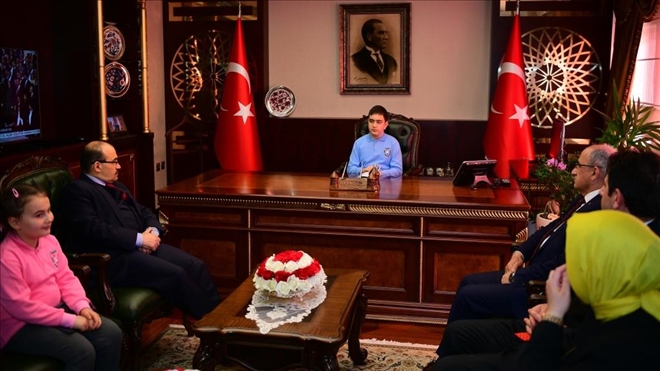 Vali Ustaoğlu, 23 Nisan Ulusal Egemenlik ve Çocuk Bayramı dolayısıyla koltuğunu minik öğrencilere devretti.